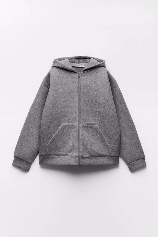 Flauschige Oversize-Jacke mit Strick-Details und Beanie