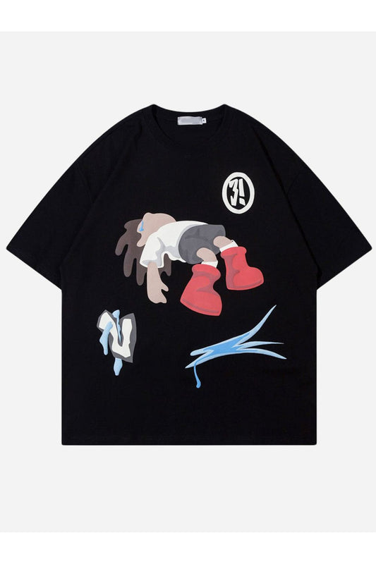 T-SHIRT MIT DEM TYP IN ROTEN STIEFELN