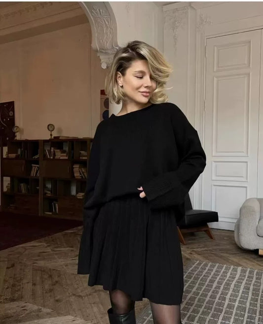 Gemütliches Strick-Set mit Falten-rock