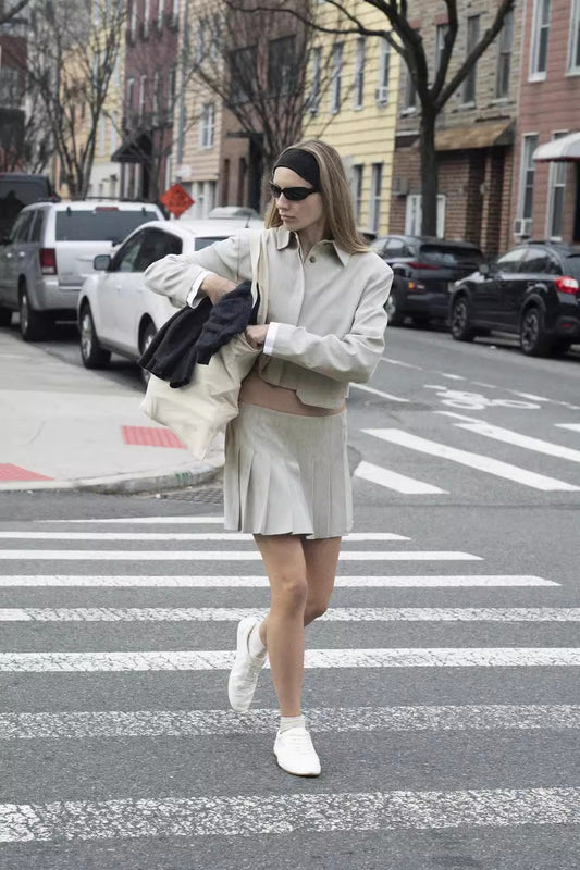 Moderner Zweiteiler mit Faltenrock